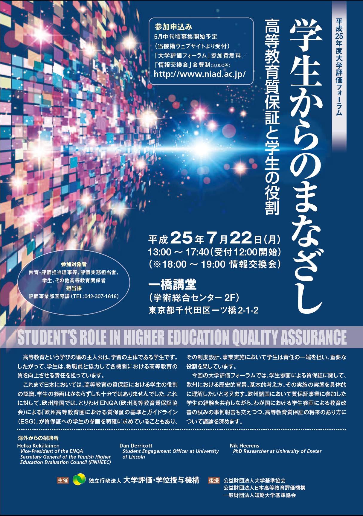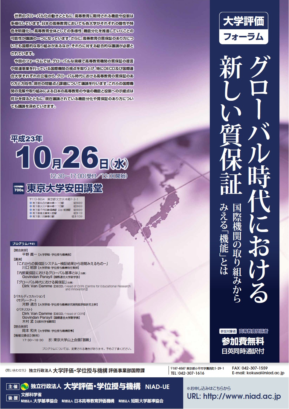 本ページでは、過去に開催した大学質保証フォーラムを紹介しています。概要や当日資料等も各ページよりご覧いただけます。最新の大学質保証フォーラムについてはこちらをご覧ください。