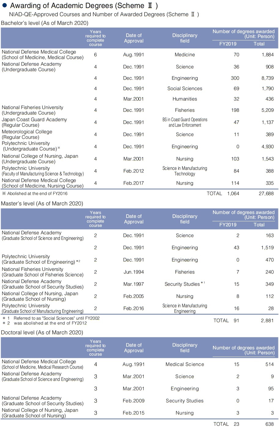 Degrees Awarded upon Completion of Study at a NIAD-QE-Approved Program (Bachelorʼs, Masterʼs and Doctoral Degrees)