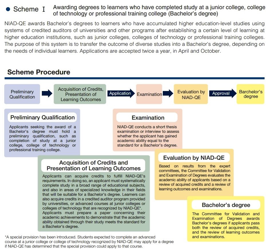 Awarding degrees to learners who have completed study at a junior college, college of technology or professional training college (Bachelor’s degree)
