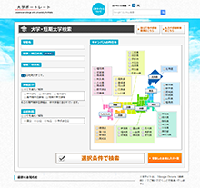 The Japanese College and University Portraits are a common database system launched in March 2015 for the purpose of disclosing and utilizing academic information on Japanese universities and junior colleges. The goals are to disseminate information about the educational activities of universities and junior colleges, in a clear manner to concerned parties, including students intending to enter a university or a junior college, and to use academic information about universities and junior colleges, to monitor and analyze the status of their educational activities.Japanese College and University Portraits (Japanese language only)
