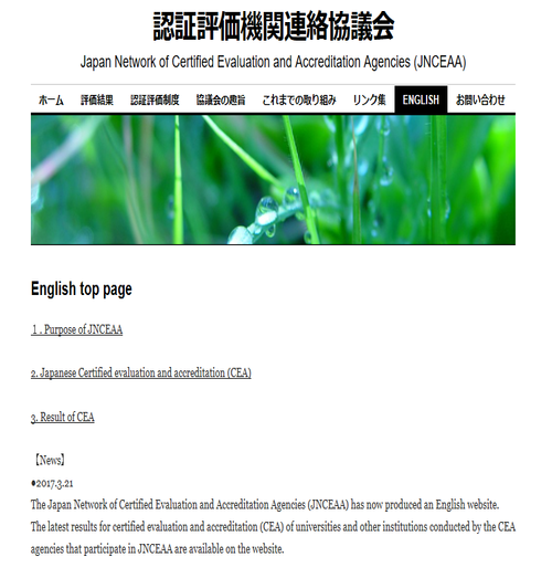 List of CEA results for universities, junior colleges, colleges of technology and professional graduate schools conducted by agencies that participate in JNCEAA ![]()