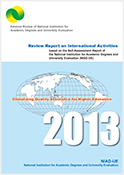 The External Review Committee was established in 2012 for the purpose of conducting a review on the activities carried out by NIAD-QE during the 2nd medium-term objective period from April 2009 to March 2014, and offering opinions on further developments and future challenges toward formulating a plan for the 3rd medium-term period starting from April 2014. The committee consists of external experts and has three subcommittees focusing on the major roles of NIAD-QE: Awarding of Degrees, University Evaluation and International Collaborative Activities. The ‘Review Report of International Activities’ is the report on the review findings given by international experts appointed as members of the Subcommittee on International Collaborative Activities.