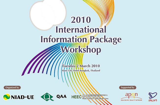 The '2010 International Information Package Workshop', hosted by the National Institution for Academic Degrees and University Evaluation (NIAD-UE) from Japan, the Quality Assurance Agency for Higher Education (QAA) from the UK and the Higher Education Evaluation Center of the Ministry of Education (HEEC) from China, was convened on Tuesday 2 March, 2010 in Bangkok, Thailand.