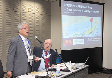 In order to strengthen the capacity of quality assurance agencies to develop and assess good practices, INQAAHE (International Network for Quality Assurance Agencies in Higher Education), in cooperation with and with financial support from APQN (Asia-Pacific Quality Network), organized a workshop named ‘APQN/INQAAHE Workshop on Good Practices in Quality Assurance’ on 25 October 2011 in Tokyo Japan, aimed at giving APQN members an opportunity to share their good practices in quality assurance. The workshop was sponsored with support from GIQAC (Global Initiative on Quality Assurance Capacity) funds. NIAD-UE, an APQN member, hosted the event.