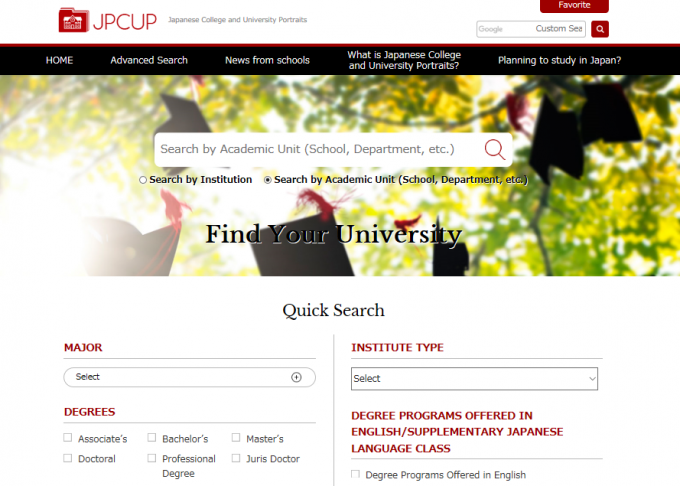 Japanese College and University Portraits (JPCUP) is a government-affiliated project managed by college associations and national authorities in higher education. Japanese universities and colleges upload their academic activities and information about features of their schools on JPCUP.