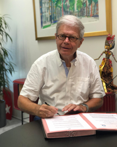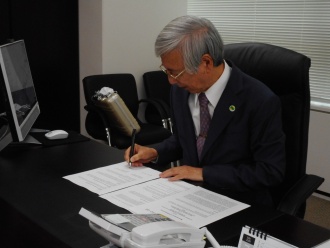 On August 12, the renewed Memorandum of Understanding (MoU) for Cooperation and Collaboration (effective until August 2025) was signed by Fukuda Hideki, Ph. D., the President of NIAD-QE and Dr. Anne Flierman, the Chair of the Accreditation Organisation of the Netherlands and Flanders (NVAO) upon the expiry of the previous MoU signed in July 2015 following the initial signing in June 2010.