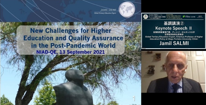 | 10:10 | 基調講演(2) 世界高等教育専門家、ディエゴ・ポルタレス大学高等教育政策名誉教授 ②New Challenges for Higher Education and Quality Assurance in the Post Pandemic World(ポストパンデミックの世界における高等教育と質保証の新たな課題) |