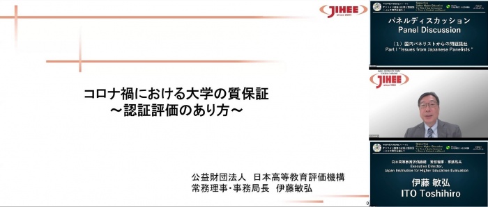 | 10:45 | パネルディスカッション (1)国内登壇者紹介と問題提起 ③「コロナ禍における大学の質保証~認証評価のあり方~」 ④「オンライン教育から見えてきたものと認証評価の改革方向」 ⑤「高等教育におけるオンライン教育とその質保証」 (2)全体討論 ※モデレーター 森 利枝:大学改革支援・学位授与機構研究開発部教授 |