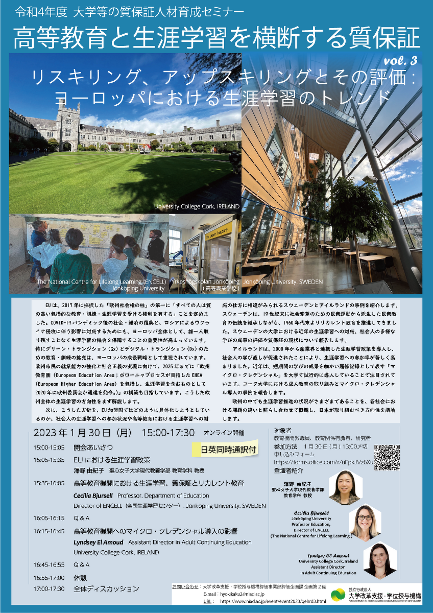 「高等教育と生涯学習を横断する質保証-リスキリング、アップスキリングとその評価:ヨーロッパにおける生涯学習のトレンド-」