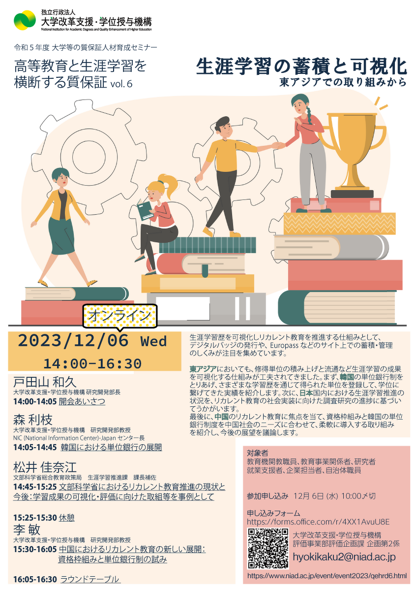 令和5年度大学等の質保証人材育成セミナー(第2回)「生涯学習の蓄積と可視化 東アジアでの取り組みから」