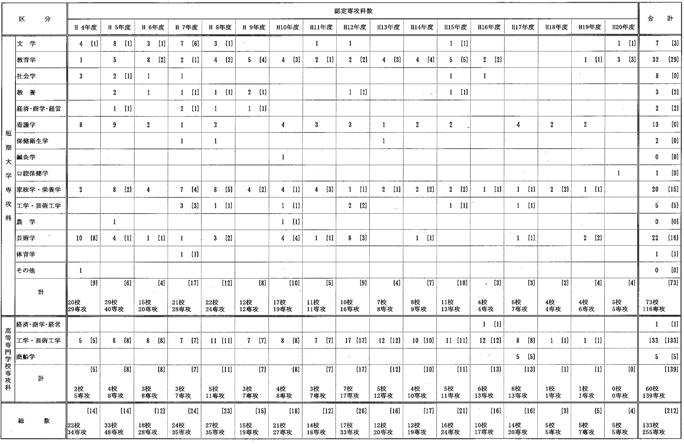 (注2)「合計」欄の学校数については、実数を記載(同一校において他の専攻科を認定したこと及び専攻科が廃止されたこと等により単純に累計とならない)。 |