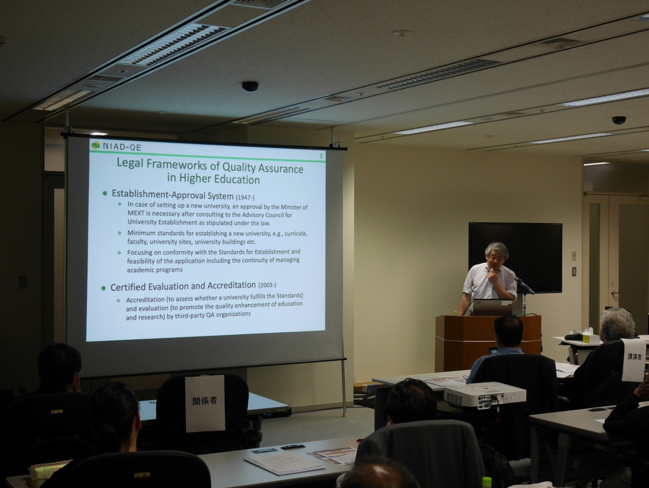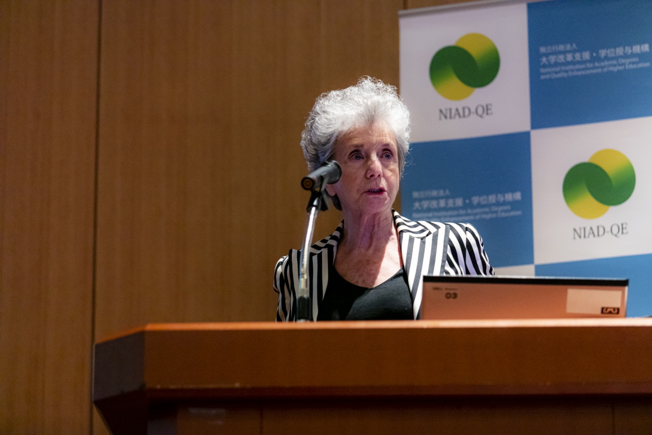 プログラム前半では、福田機構長の開会挨拶、山本研究開発部長の趣旨説明に続き、インド国家評価アクレディテーション審議会(NAAC:National Assessment and Accreditation Council)顧問、高等教育質保証機関国際ネットワーク(INQAAHE:International Network for Quality Assurance Agencies)元会長及びアジア・太平洋質保証ネットワーク(APQN:Asia Pacific Quality Network)前会長であるJagannath Patil氏と米国高等教育アクレディテーション協議会会長のJudith Eaton氏より、基調講演が行われました。