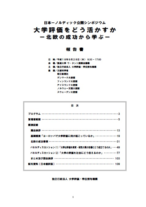 | 2006年9月28日 | 日本・ノルディック公開シンポジウム 「大学評価をどう活かすか―北欧の成功を学ぶ―」 |